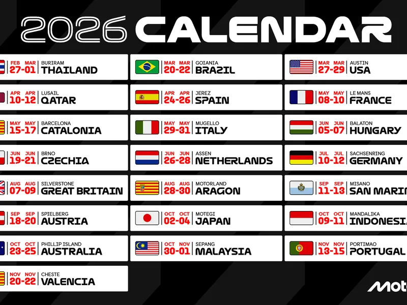 Kejutan terbesar muncul di seri perdana. Untuk pertama kalinya dalam sejarah modern, Buriram, Thailand, didapuk sebagai seri pembuka pada 27 Februari – 1 Maret 2026. Ini adalah langkah strategis Dorna untuk menangkap gairah gila pasar Asia Tenggara. Balapan di Buriram yang biasanya panas dan lembap akan langsung menguras fisik pembalap sejak hari pertama musim dimulai.